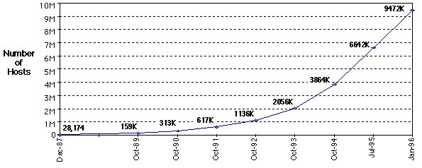 Figure 1 Growth in number of hosts on the Internet