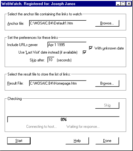 WebWatch is a client-side chronological awareness system for keeping track of changes in selected web documents. Given an HTML document referencing URLs on the web, it produces a filtered list, containing only those URLs that have been modified since a given time (Figure 2).