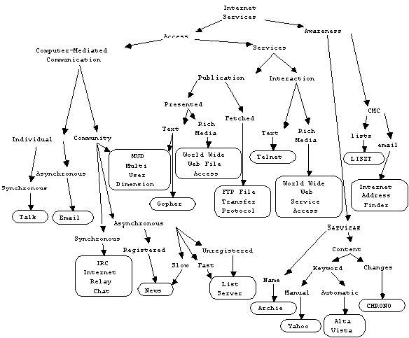 Figure 1 is a concept map presenting the major services on the net in terms of a small set of fundamental distinctions:-