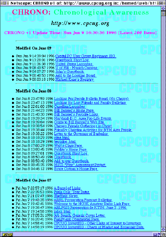 CHRONO is an HTTPD server-side system which generates chronological listings