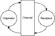 Note that agent processing times and channel delays have been lumped. A study focusing on the impact of communication delays would want to consider them separately, otherwise there is no significant distinction--a general principle might be that communication delays should not be greater than agent processing times. Note also that the diagram is to a large extent symmetrical--the recipient becomes an originator when responding.