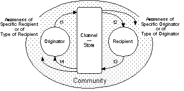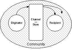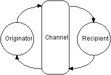 Note that individual's cognitive processing times and channel delays have been lumped. A study focusing on the impact of communication delays would want to consider them separately, otherwise there is no significant distinction. A general principle might be that communication delays should not be greater than individual's cognitive processing times. Note also that the diagram is to a large extent symmetrical- the recipient becomes an originator when responding.
